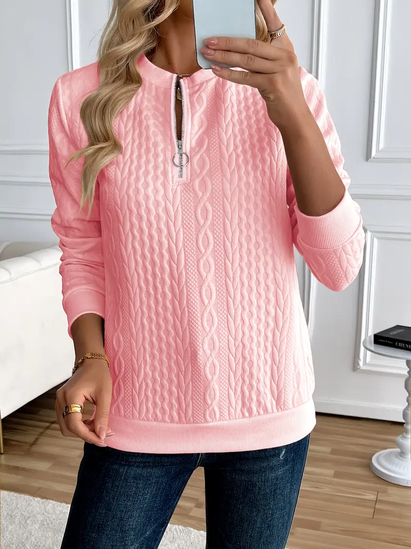 Ideal für die kälteren Monate vereint dieses Sweatshirt Wärme mit mühelosem Stil. Für die moderne Frau entworfen, bietet es außergewöhnlichen Komfort und Vielseitigkeit. Ob Sie ausgehen oder zu Hause bleiben – der raffinierte Schnitt sorgt für die perfekte Balance zwischen Lässigkeit und Eleganz.